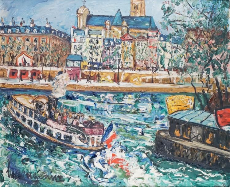 PARIS, BATEAUX SUR LA SEINE DEVANT L'ÉGLISE SAINT-GERVAIS