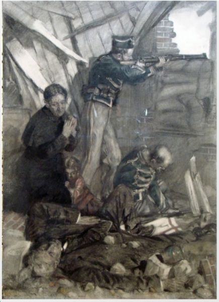 Charcoal and watercolours