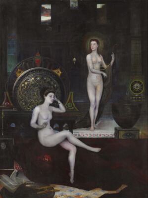 Symbolist composition with two naked women