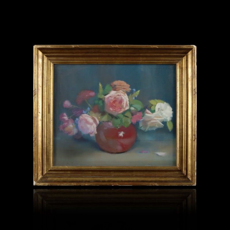 Bouquet de roses au vase rouge