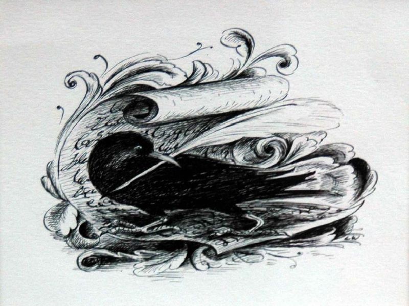 A Cornish chough with a quil