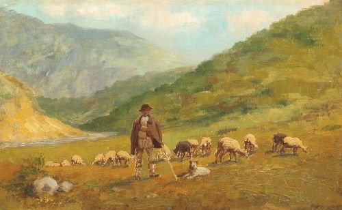 Ciobănaş cu turmă de oi