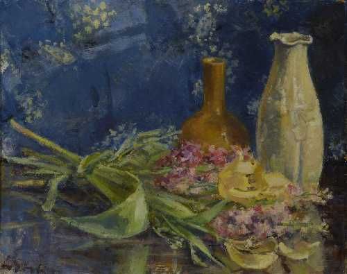 Stillleben mit Blumenstrauss und Vasen. 1959