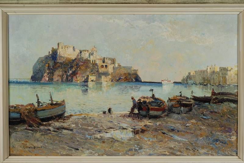 Ialienische Küstenszene mit Fischern u.Fischerbooten