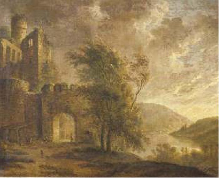 PAESAGGIO FLUVIALE CON CASTELLO E PAESANI