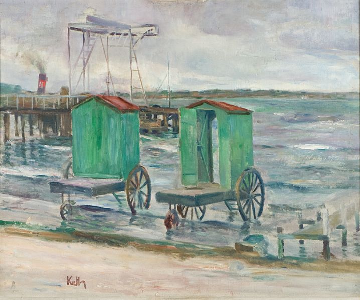 Badekarren in der Nähe einer Bootsanlegestelle.