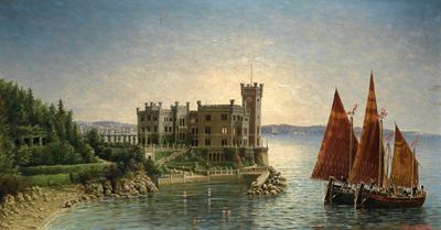 | Blick auf Schloß Miramare im Hintergrund Triest | |