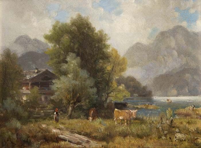 Am Kochelsee, romantische Ansicht mit Figurenstaffage