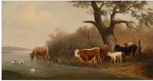 Kühe an der Tränke.