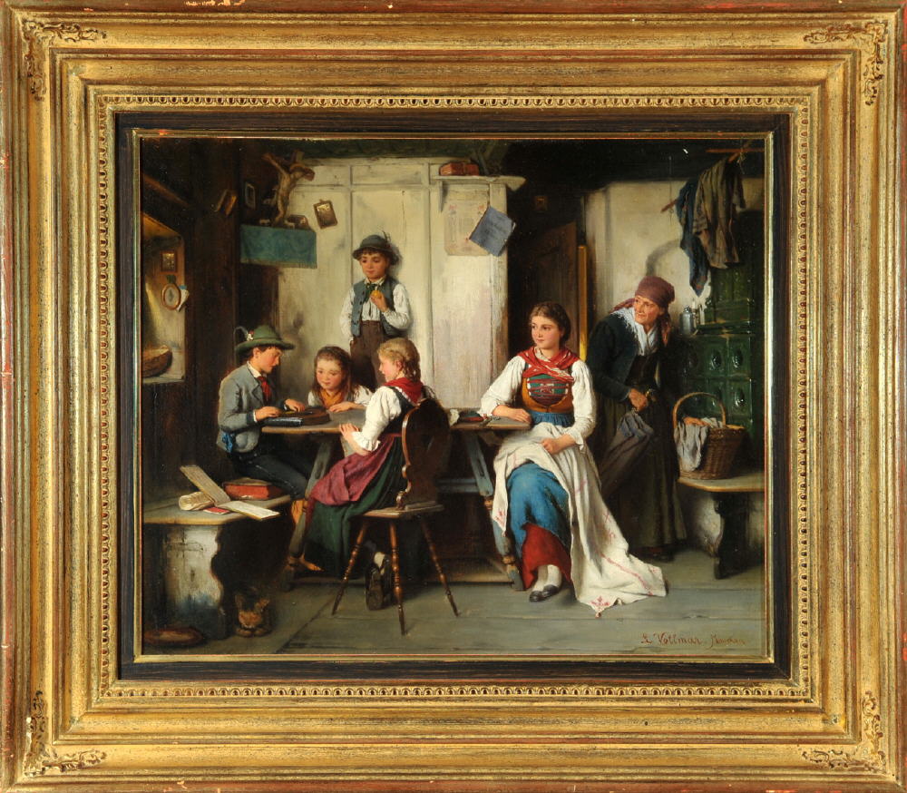 Bäuerliches Interieur mit Zither spielendem Jungen