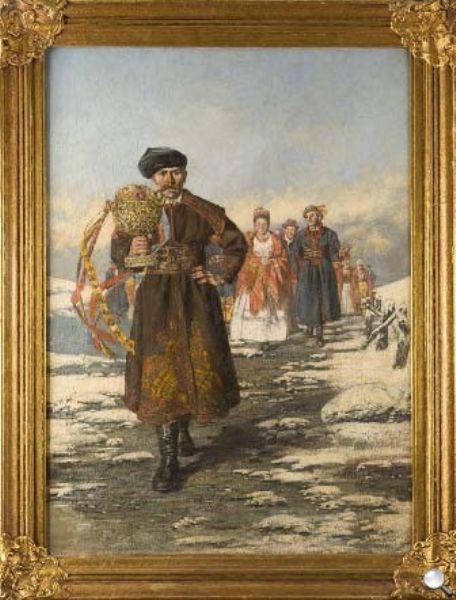 Starosta prowadzący orszak weselny, przed 1900 r