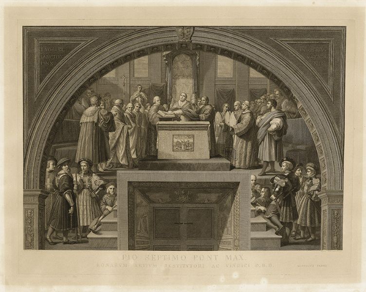 | Die Stanzen des Vatikan ("Pio Septimo Pont. Max. Bonarum Artium Restitutori Ac Vindici D.D.D.") | |
