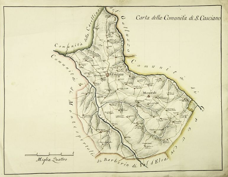 Carta geografica manoscritta della Comunità di S. Casciano, scala Miglia Quattro