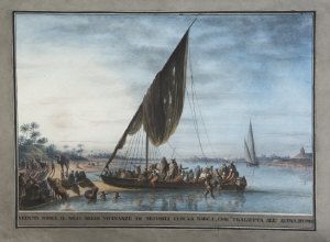 VEDUTA SOPRA IL NILO NELLE VICINANZE DI NEDSSILI CON LA BARCA, CHE TRAGETTA ALL ALTRA SPONDA
