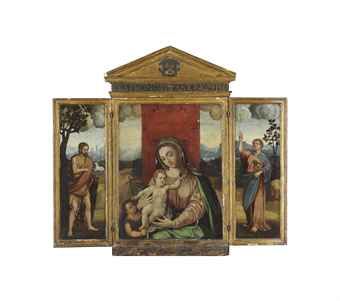 | A triptych of The Virgin and Child with the young Saint John the Baptist; Saint John the Baptist on the left wing; Saint John th | |