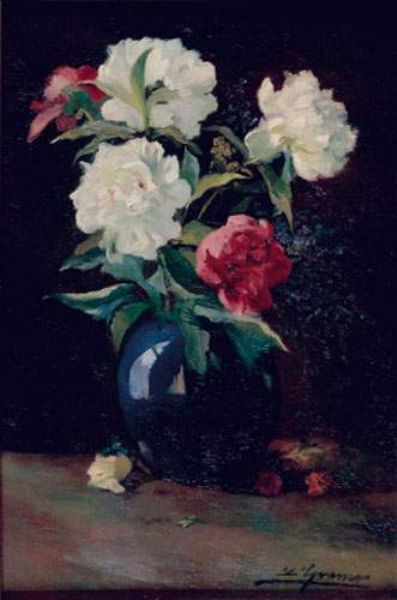 Bouquet de pivoines dans un vase bleu
