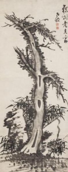 Old Tree, Bamboo and Rock