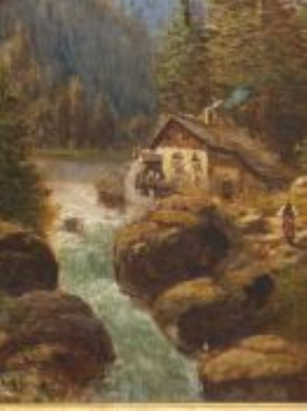 Mühle am reissenden Gebirgsbach unter Bergmassiv