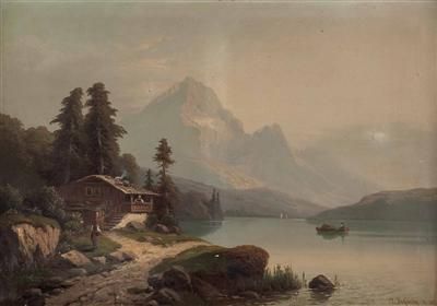 Alpine Seelandschaft mit Bauernhaus