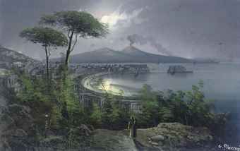 | The bay of Naples at night, with Vesuvius erupting beyond (illustrated); Bay of Naples; and Fisherfolk on the shore, Sorrento | |
