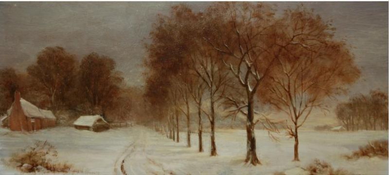 WINTER LANDSCAPE AND FIGURE BOATING