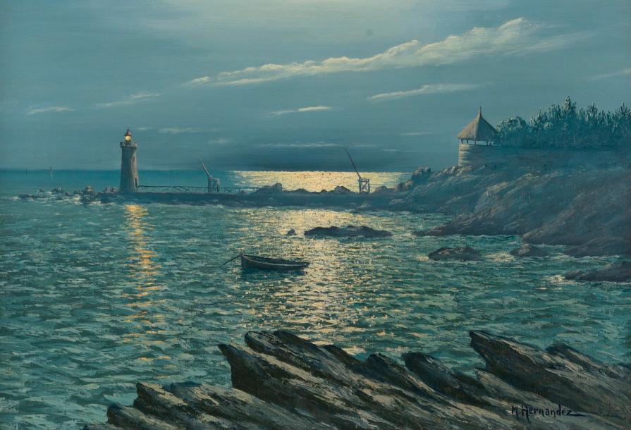 | Phare et rivage au clair de lune. | |
