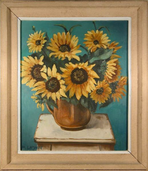 Prächtiger Sonnenblumenstrauß in einem Tonkrug