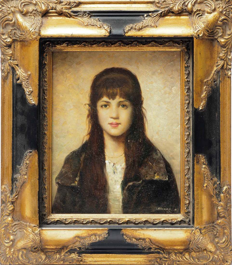 Half-length portrait of a young girl looking at the viewer in a fur coat