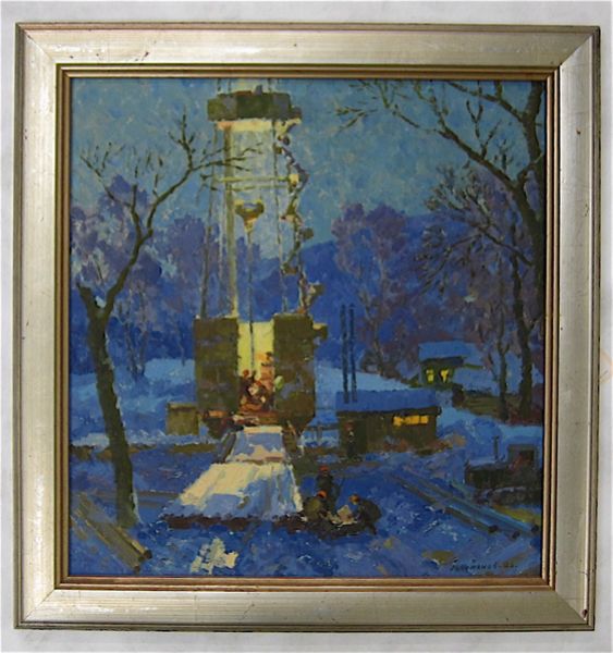 Drilling rig in winter, an impressionist industrial scene.