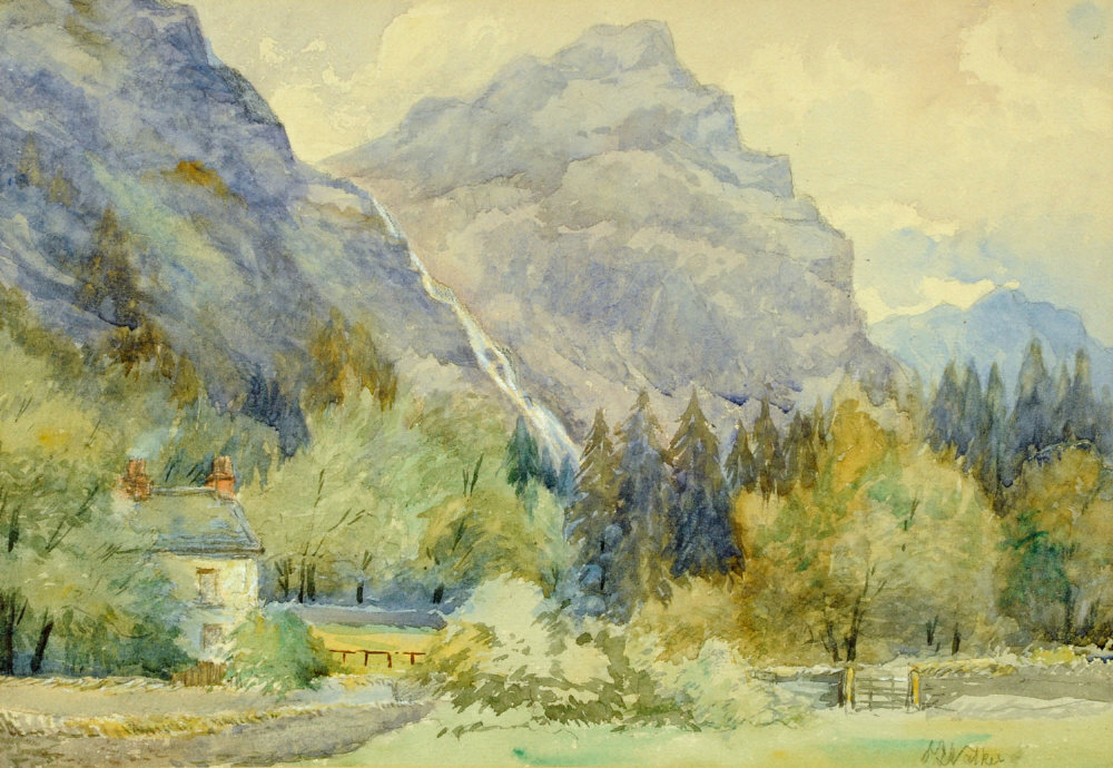 Cottage in mountainous landscape