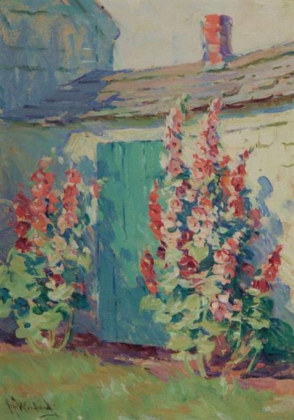 Hollyhocks-Doorway of Warly Home in Portsmouth, NH, c. 1922