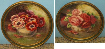 Roses - Pensées Deux aquarelles de format tondo (vernies)