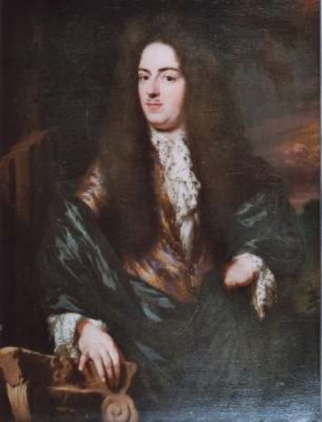 Dreiviertelporträt eines w. englischen Adligen vor Landschaft