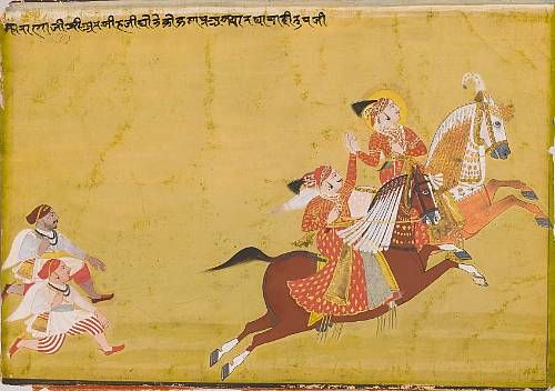 out riding accompanied by a prince, retainers running alongside Mewar, circa 1770