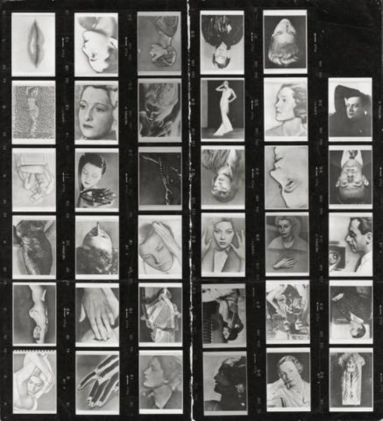 | CONTACT SHEET WITH 35 PHOTOGRAPHS FROM THE BOOK „PHOTOGRAPHS BY MAN RAY: 1920 PARIS 1934“ AND 6 PHOTOGRAPHS OF VARIOUS WORKS BY | |