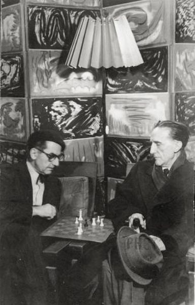| MAN RAY AND MARCEL DUCHAMP PLAYING CHESS IN MAN RAY'S STUDIO AT 2 BIS, RUE FÉROU, PARIS | |