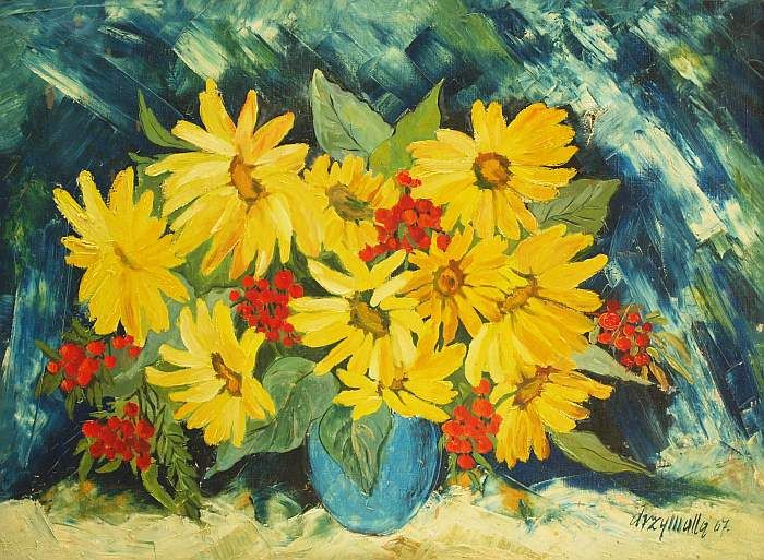 Blumenstilleben in blauer Vase