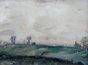 Figures in a hilly rural landscape