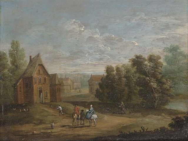| A wooded river landscape with figures on horseback by a village; and A wooded river landscape with anglers on a river bank | |