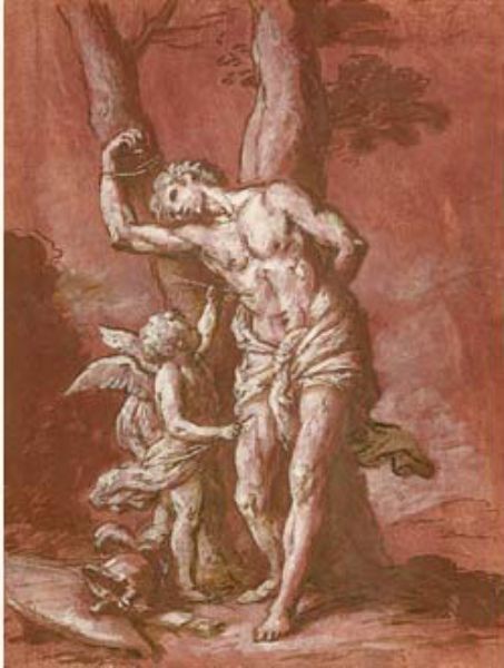 Saint Sébastien secouru par un ange