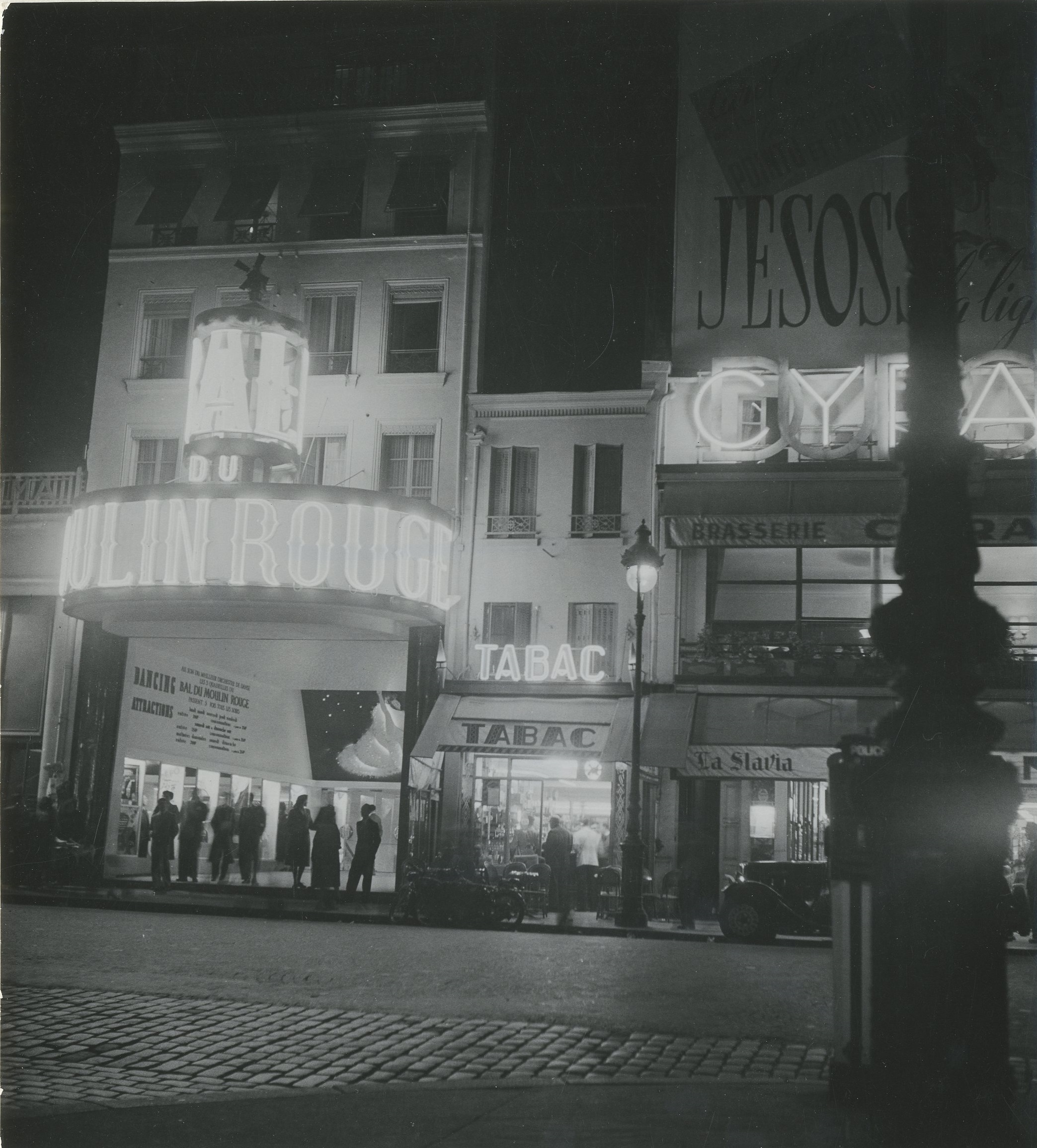 | Place Blanche [The Moulin Rouge, a tobacco and a brasserie illuminated at night], Montmartre | |