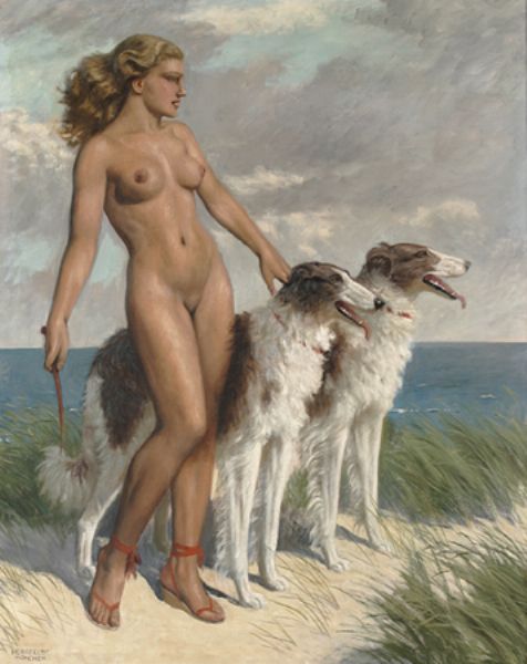 Weiblicher Akt mit Windhunden