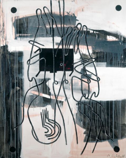 Lacquer and cord on canvas