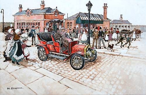 Street scene with motor car and figures