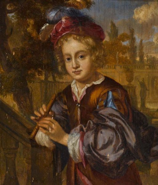 Knabe mit Flöte in Parklandschaft