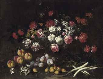 | Roses, tulips and other flowers, with peaches, plums, figs, artichokes and asparagus | |