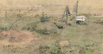 | Watercolor and gouache, with gum arabic in places, on paper | |