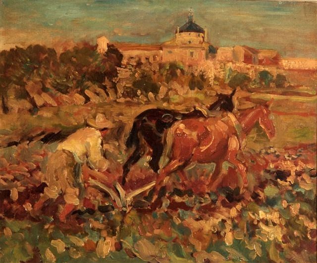 Man ploughing with two horses, Toledo, Spain