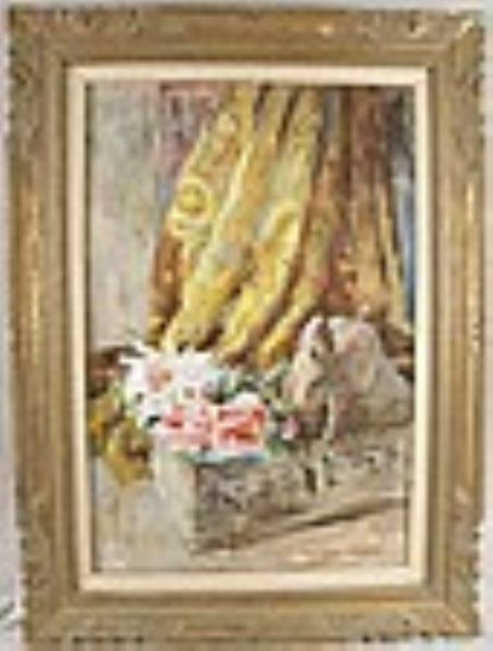 STILL LIFE WITH FLOWERS AND GOLD DRAPERY