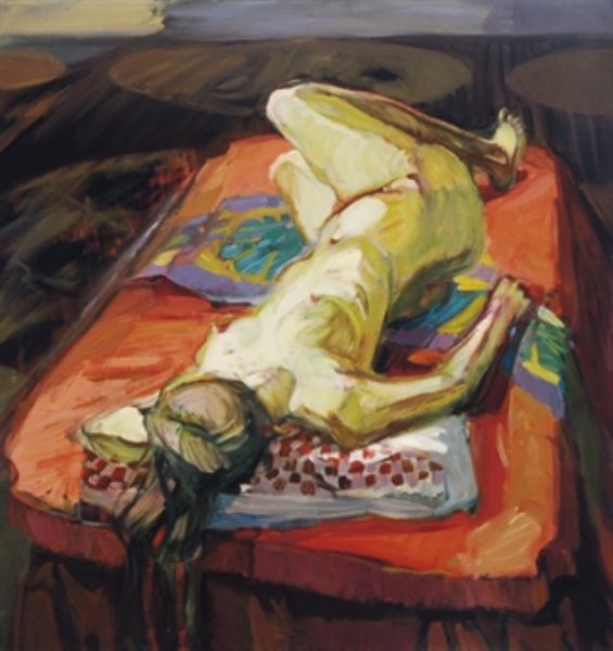 Reclining nude on a red bed
